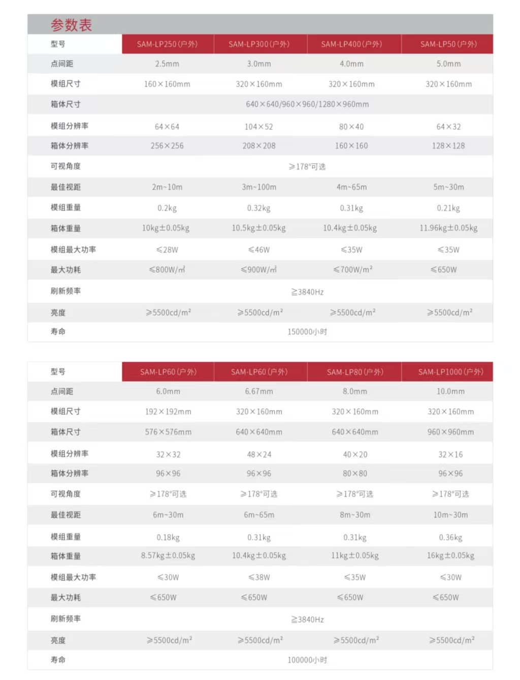 产品参数